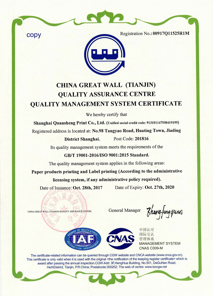“太阳杯”亚洲标签大奖赛最佳印制奖
